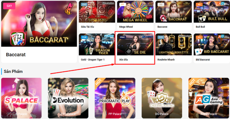 Bước 2: Chọn Live Casino và vào bàn Xóc Đĩa